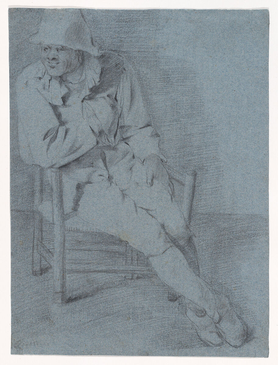 - Medium: Black chalk, with touches of white chalk, on blue paper