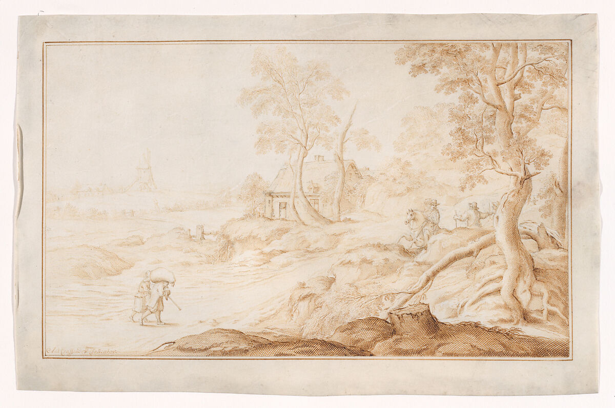 Amateur artist Anthonie Crussens was active in Brussels from 1652 to 1665. He specialized in drawings in brown ink on vellum with a technique that evokes the tapering, cross-hatched lines of engravings.