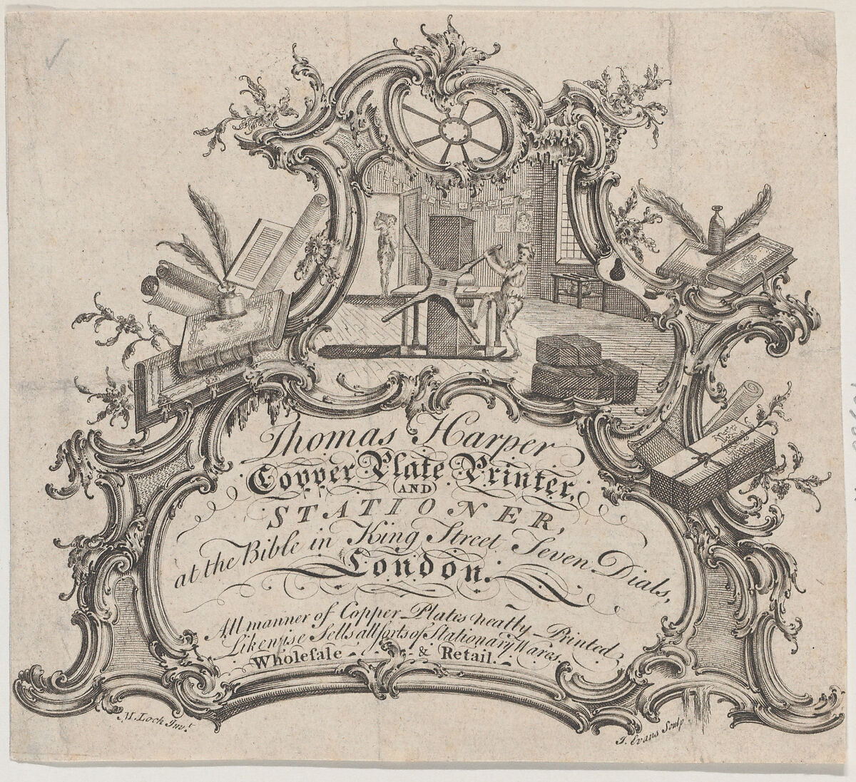 - Title: Trade Card for Thomas Harper, Copper Plate Printer and Stationer