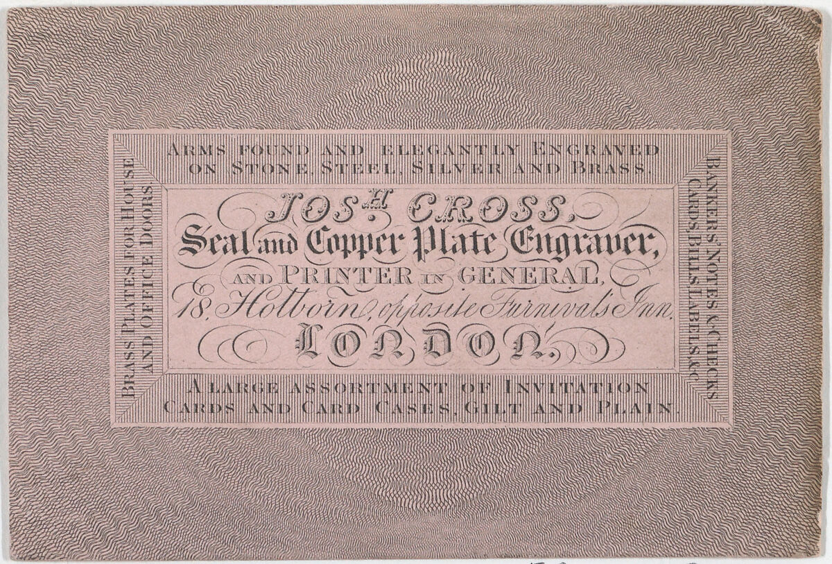 Trade Card for Joshua Cross, Seal and Copper Plate Engraver