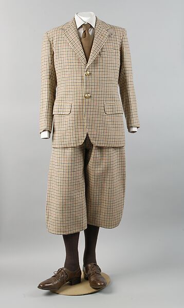 Mrs. Simpson's first impression of the Prince of Wales was "An incongruous figure in baggy plus fours, a thick sweater, hair tousled." The Prince of Wales popularized plus fours in the 1920s. He disliked the traditional style of plus fours with fastenings below the knees, which he found restrictive and uncomfortable. With his tailor, Forster & Son, he developed a loose-fitting version with a soft cotton lining. The Prince of Wales wore them slightly lower than the conventional four inches below the break of the knee. Plus fours became his standard dress for hunting and sporting pursuits. As a keen golfer, he would wear them with brightly colored Argyle socks and Fair Isle sweaters. Commenting on the prince at play, Nicholas Lawford noted, "He was quite loud in the way he mixed his checks, but he represented style to his generation." Gabrielle "Coco" Chanel based a costume for Diaghilev's ballet Le Train Bleu on a snapshot of the prince playing golf. Her "golf player" wore "a white collar, tightly knotted tie and, along with his plus-fours, a striped sweater with matching socks."
