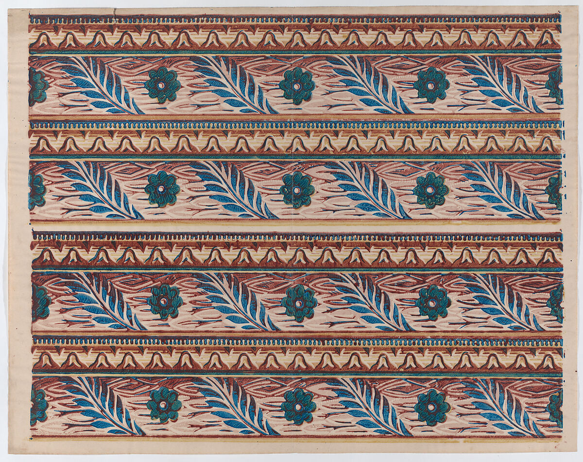 - Title:Sheet with two borders with flower and leaf designs