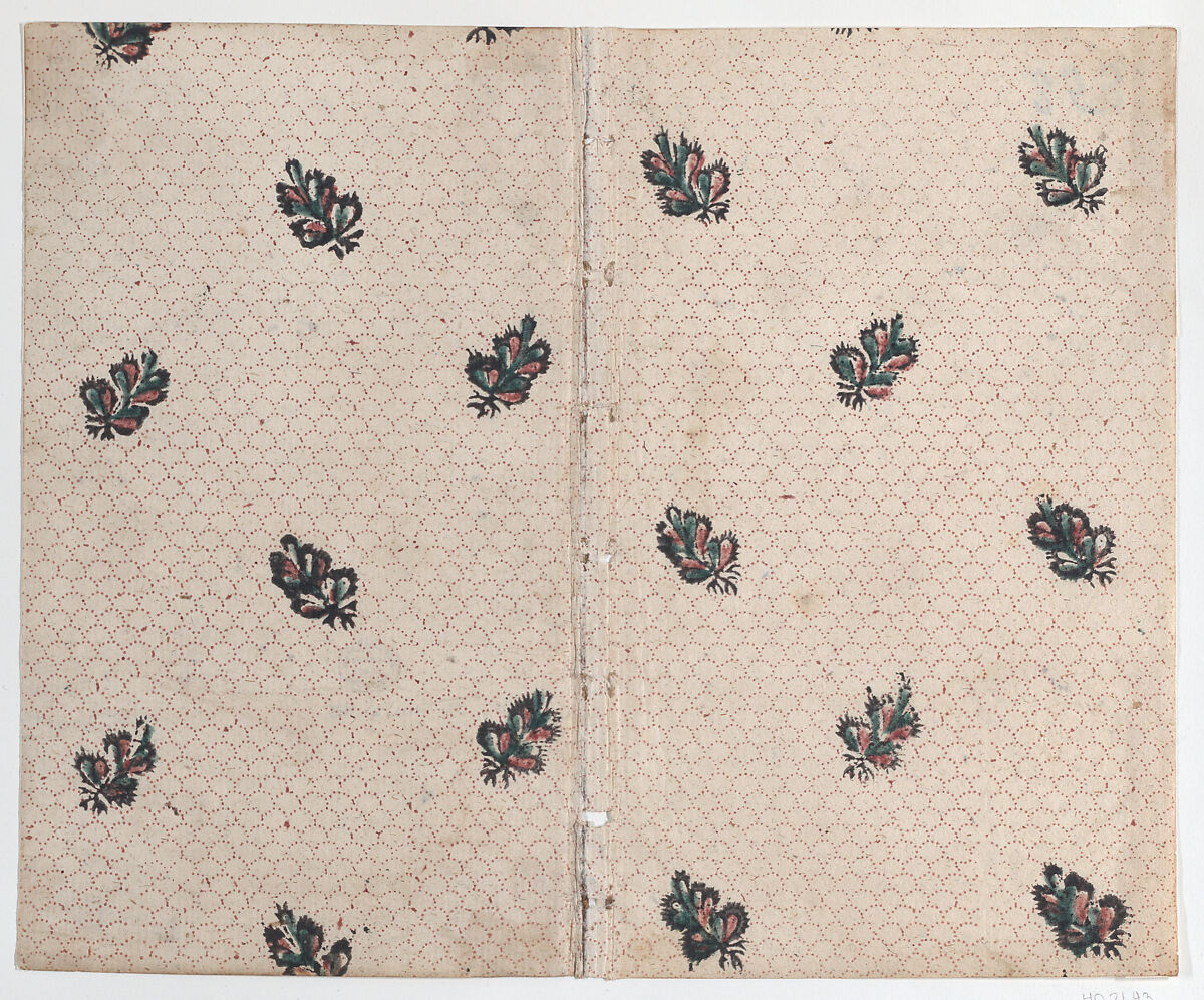 - Title: Sheet with overall dot and floral pattern