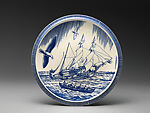 Capitalizing on the popularity of Moby Dick, the owner of Vernon Kilns approached the artist sometime in the early 1930s. Kent agreed to design three services, one of which was an adaptation of his line drawings for Moby Dick. Yet the artist did not re-use or even adapt any of those illustrations. Rather, as seen on this large platter, he developed new designs and perhaps responding to a request by the manufacturer, his designs for the dinnerware mainly portray the Pequod under full sail and do not convey any of the drama, disquiet, or danger present in the book illustrations, but are somewhat benign.