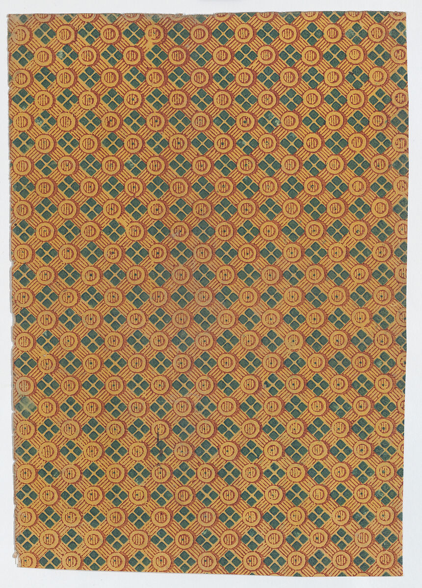 - Title: Sheet with overall geometric pattern with striped circles and squares