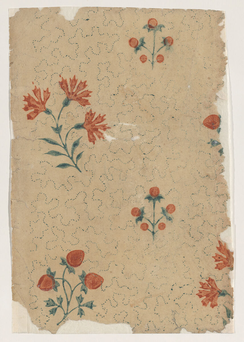 - Title: Sheet with overall dot pattern with bouquets