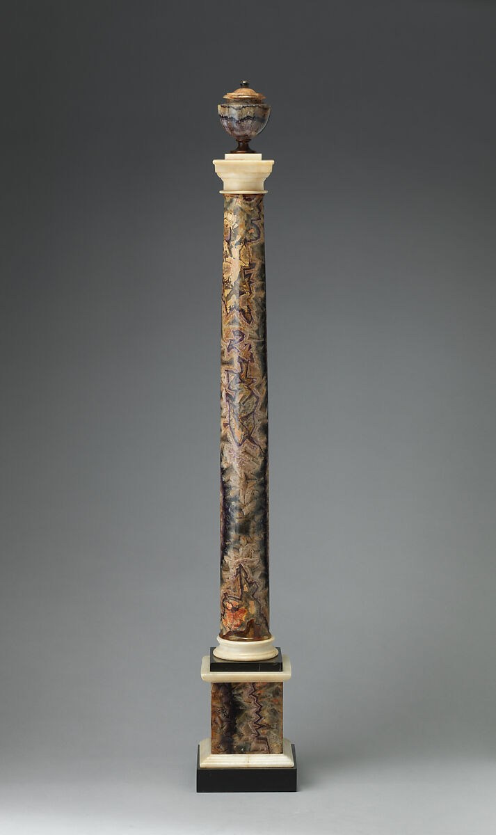 Blue John, also known as Derbyshire Spar, is a rare semi-precious mineral, which can be found only in Britain, primarily in Derbyshire. This neo-classical urn and columns are highly evocative of eighteenth-century British taste for hardstones fashioned into classical forms.