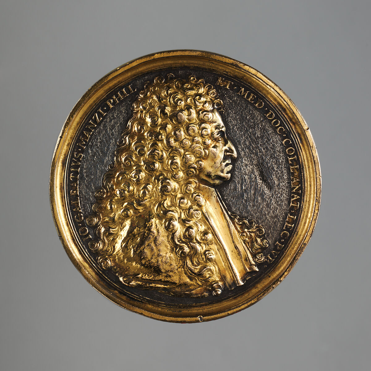 Although all but forgotten today, Gian Galeazzo Manzi, a professor of philosophy and medicine at the University of Bologna and a public anatomist, was famous during his lifetime for his scientific accomplishments. In 1671 during the canonization process of Catherine of Bologna (1413-1463), Manzi was among the panel of physicians who examined her body in order to establish its miraculous incorruptibility. The unknown sculptor of this medal portrays Manzi in his old age, bewigged and clothed in academic robes. The reverse shows all of Italy -- personified by the Tiber, Arno, and Po rivers – encompassed by the zodiacal arc of Manzi’s genius.