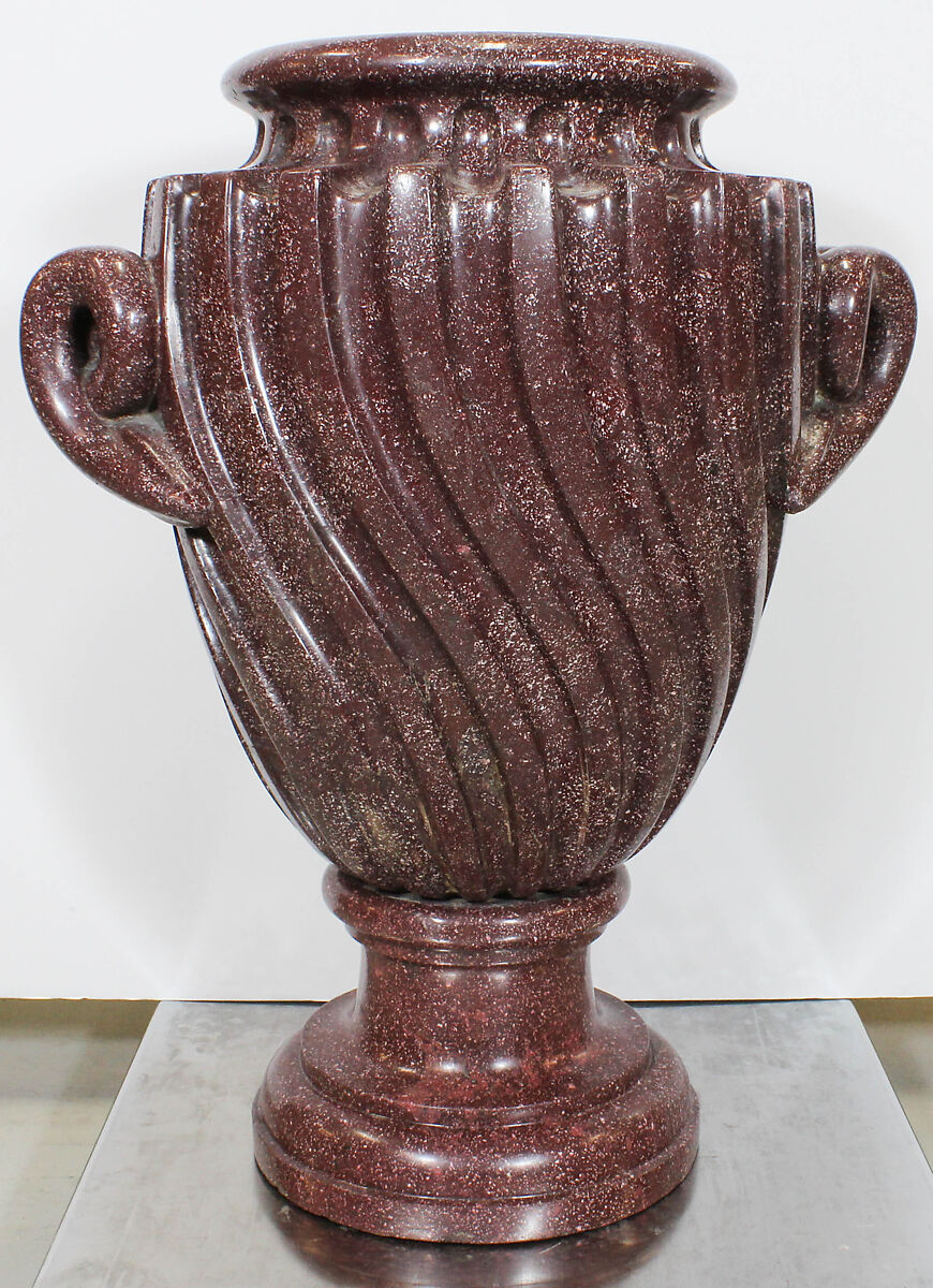 This monumental Imperial porphyry urn is likely to be the pair to an identical urn (with its lid) formerly in the Spanish Royal Collection, now preserved at the Prado. King Philip IV of Spain, who acquired the urn now at the Prado, was a keen collector of porphyry. His grandson Louis XIV clearly inherited this passion, forming the most significant collection of porphyry objects in Early Modern Europe. The King of France, who compared himself to the rulers of Ancient Rome was well aware of the symbolism associated with Imperial Egyptian porphyry. The use the ‘purple stone’ was tightly controlled by Roman emperors and therefore closely connected to their divine power. Porphyry is also an extremely hard stone, which means that only very skilled sculptors could work on it.