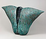 Geffen creates sculptures that appear to undulate and breathe. Here, broad, winglike expanses—a technical feat—emerge from a swollen center, the whole precipitously balanced upon a rounded posterior. The surface mimics corrosion in both texture and color, nodding to environmental processes and reactions.