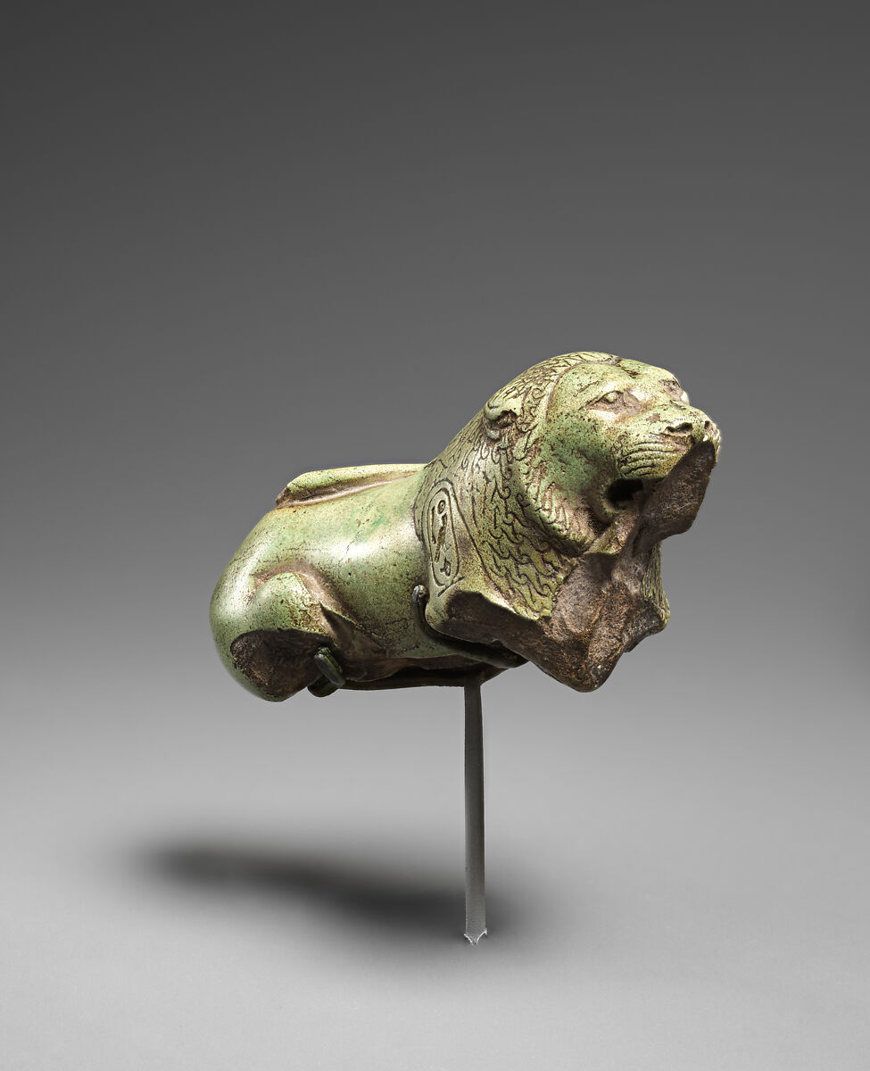 Stylistic elements like the curled mane suggest the lion was created in the Near East, and even more specifically point to the Syro-Hittite area. In fact, the piece speaks with remarkable immediacy of a moment in Egyptian history. Between 609 and 605 Necho's Egyptian troops fought at Harran and Carchemish in the Syro-Hittite region alongside the Assyrians against the conquering Neo-Babylonians under Nebuchadrezzar II.