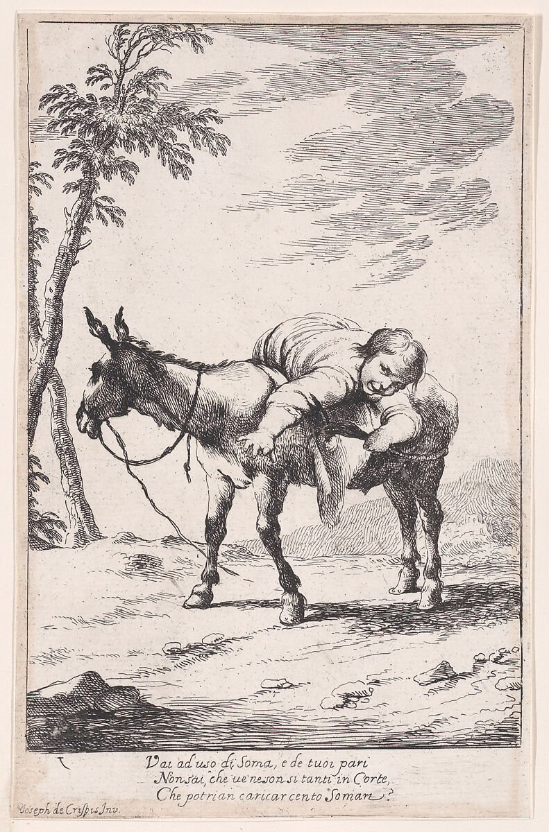 - Title: Plate 7: Bertoldino lying on a donkey, from "Bertoldo, Bertoldino, and Cacasenno"