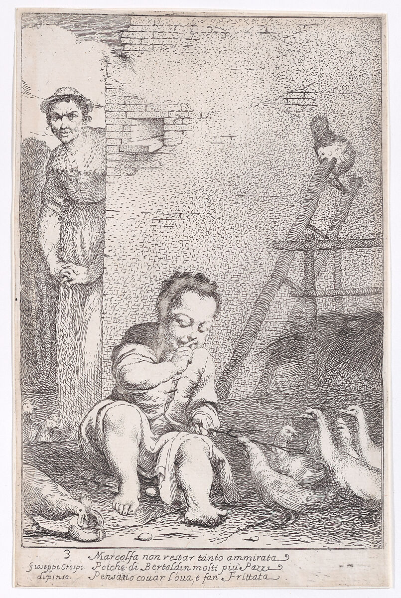 - Title: Plate 9: Marcolfa finds Bertoldino hatching eggs, from "Bertoldo, Bertoldino, and Cacasenno"