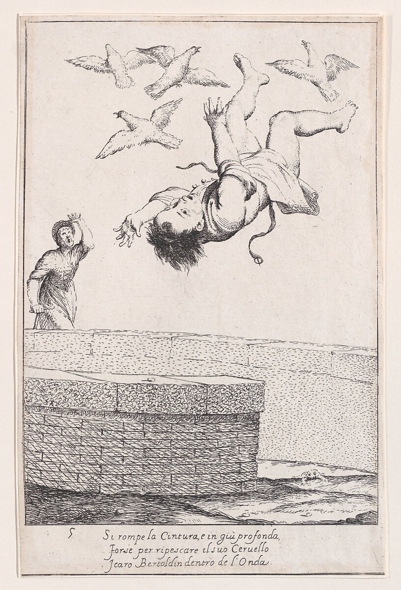 - Title: Plate 11: Bertoldino falling into the fish pond, from "Bertoldo, Bertoldino, and Cacasenno"