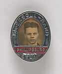 From its beginnings in 1839, the medium of photography has served multiple masters; artists wanting to make quick sketches of figures, architecture, and landscape; the press which has desired timely illustrations to help chronicle and sell the daily news; and even the courts which gather photographs as evidence of innocence or guilt. These identification badges represent a type of vernacular photographic portraiture that has been undertaken by American employers since the late 1910s to identify their workers and protect their businesses. (The Metropolitan's own staff ID badge and swipe card is merely the current version of these photographic pin badges.) In these small, intimate portraits, a suite of average American workers stand at attention, identified at times by their name, but always by their particular physiognomy, employee number, and by the idiosyncratic font and name of the company for which they worked. In their marvelous, colorful, and oxidized cast metal frames (from the Goshen Rubber Co. to General Motors to the Raymond Bag Co. in Middletown, Ohio), these portraits unconsciously record the claustrophobia of a nation caught between the Great Depression and World War II. Equally importantly, they reveal a typology of the individual worker at a time when the United States had what was arguably most resourceful and versatile body of labor in the world.