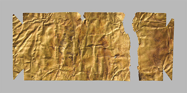 The tablet is of sheet gold with Greek letters cursorily inscribed.