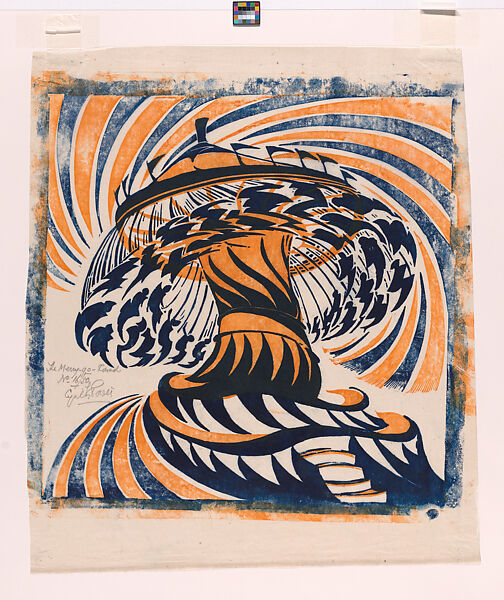 The Merry-Go-Round, which was inspired by a visit to the Wembley Exhibition Fun Fair in London, conveys the dynamism of contemporary life. In order to depict symbols of modernity—such as race cars, subways, sporting events, amusement parks, and machinery—Power and other students at London’s Grosvenor School of Modern Art embraced the linoleum cut, a relief-printmaking technique related to the woodcut. Linoleum, an inexpensive, synthetic material, was easier to carve than wood and allowed artists to realize a greater variety of effects, such as flat planes of color, diverse textures, and long, sinuous lines. The strength of the material enabled artists to pull a greater number of prints without compromising quality; the resultant prints were then sold at lower prices, thus reflecting the group’s democratic aspirations.