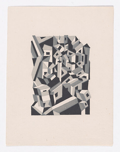 After training at a gun station in Britain, Wadsworth sailed to the Eastern Mediterranean and was based on the Greek island of Lemnos, where he analyzed aerial reconnaissance photographs. He also created drawings that he would develop into woodcuts upon returning home in late 1917. Riponelli: A Village in Lemnos recalls Wadsworth’s earlier woodcuts (especially Yorkshire Village), yet unlike these Vorticist pieces, it was not inspired by industrial landscapes but rather the Mediterranean environment and its "warships and volcanos," as Wadsworth noted in a letter to Wyndham Lewis. Here, he depicted stone houses stacked on a hilly terrain. Wadsworth experimented with colored inks and papers in a variety of combinations to produce different visual effects and sensations.