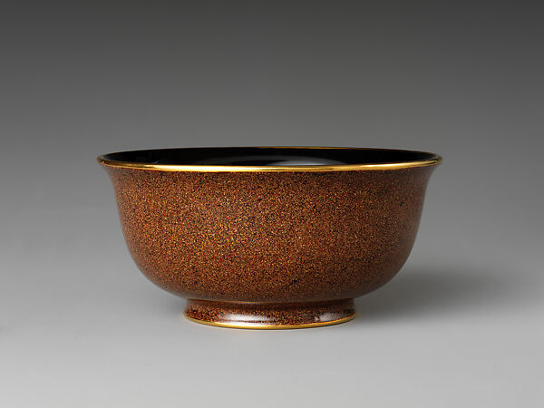 - Medium: Marbled lacquer (xipi) with gold foils, gold rim