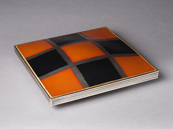 The son of a metalsmith, Tanaka trained both with his father and at the Tokyo Metropolitan Crafts High School. He is known for his mastery at fusing gold, silver, and copper alloys into luminous surfaces and onto his signature hammered boxes. In this work, the metal alloy squares are welded into a checkered pattern. His career was launched in 1971, when his art was shown at the annual exhibition of the Japan Art Academy (Nitten).