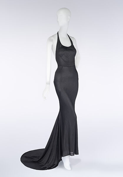 Azzedine Alaïa never followed fashion, but stated "It's women who have dictated my direction, I have followed the education of their silhouette." He worked the two-dimensional textile into a sculptural three-dimensional garment like a sculptor works with stone. Inspired by the work of Madeleine Vionnet, whose work he collected, he engineered bias-cut dresses in jersey fabrics using synthetic fibers that cling to the body, resulting in his nickname "The King of Cling." The sensual silhouette of this dress echoes the elegant draped silhouettes of Alaïa's youth in Tunis, and testifies of his eternal quest and research into the "academy of the female body," as he called it.
