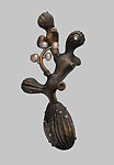 This elegantly carved, pearl and diamond-studded boxwood brooch is the work of Sharon Church, an exceptional jeweler and artist based in Philadelphia, who in 2018 was honored by the Society of North American Goldsmiths with their prestigious Lifetime Achievement Award. Church creates organic forms that recall underwater creatures, fantastical plants, or imaginary animals. Hand-carved from such natural materials as wood, bone, and horn, her jewelry is frequently ornamented with diamonds to produce a dazzling effect. It is at once powerful and sensual and infused with a symbolic language of growth and decay. The title of this brooch, "Persephone’s Bouquet," refers to the Greek goddess of vegetation, the beautiful Persephone, who was gathering flowers with nymphs when she was abducted by Hades, god of the Underworld. The donor, Helen Williams Drutt English, is a well-known collector, dealer, curator, and educator.