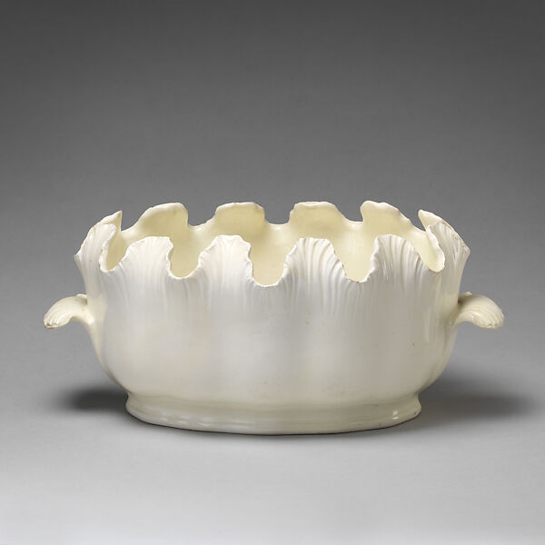 In addition to his ornamental vases, Wedgwood produced an incredible variety of shapes in creamware for the table. This monteith, a type of vessel used to cool wine glasses, demonstrates the firm’s ability to combine naturalistic elements such as the scalloped leaves with a restrained elegance of form.