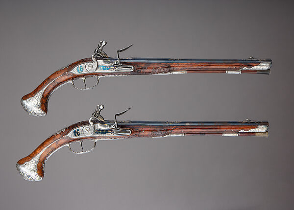 The holdings of the Department of Arms and Armor contain only one other comparable example of Viennese gunmaking, a pair of well-made, but otherwise plain brass-mounted flintlock pistols, also by Keiser, dating to about 1710 (acc. no. 28.100.12, .13). They make an instructive contrast to the deluxe pair under discussion.