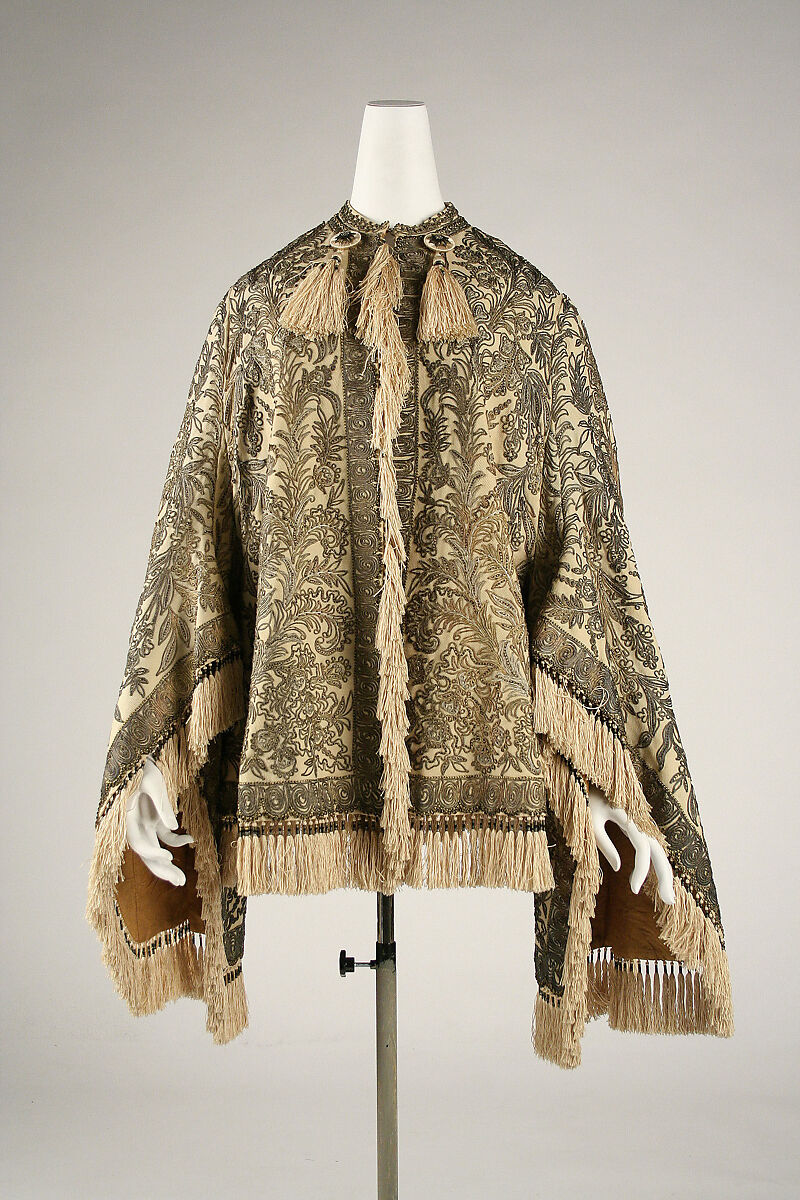 Braid and soutache in the decorative configurations of Turkish style were ubiquitous by the mid-nineteenth century. Seen on costumes as disparate as children’s dresses, ladies’ summer walking ensembles, and men’s smoking jackets, the style was most evident on outer garments such as this mantle.