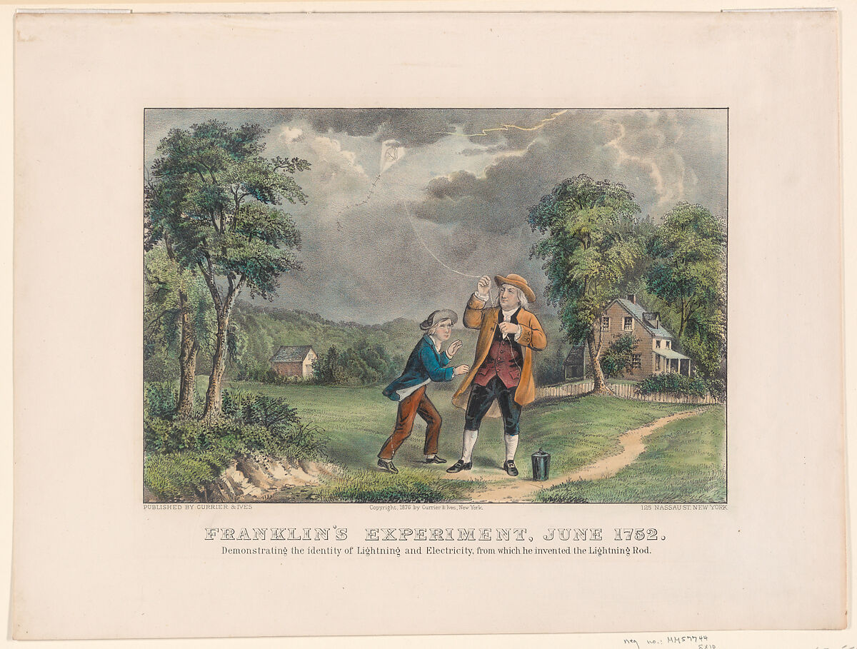 - Title: Franklin's Experiment, June 1752 – Demonstrating the identity of Lightning and Electricity, from which he invented the Lightning Rod
