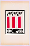Gardner here offers a minimalist response to the brutality that unfolded at Kent State University in 1970 (see 1971.554.1 for his companion print). A dark triad of weapons and repeated shocked questions are placed above and below red and white stripes echoing the American flag—a combination that challenges the viewer to ponder national values and identity. After unarmed students protesting the Vietnam War were killed and wounded on the Ohio campus, student-led strikes erupted across the country, forcing the temporary closure of many colleges. The tragedy is now seen as a turning point that helped shift public opinion against the war.