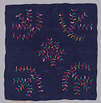 Vibrant, stylized plants are embroidered on this cloth. While most of the leaves appear in a single color, some are composed of two or three colors. Referencing family trees and fecundity, textiles with this type of branching plant motif were often used to wrap wedding gifts.