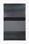 Merrill Wagner, who came of age as an artist in the 1960s, works across the categories of painting, sculpture, and installation. Over the course of her long career, she has consistently engaged a wide range of subjects, including landscape (both urban and natural), materiality, duration, metamorphosis, and abstraction. Wagner employs both natural and industrial materials, most of them either reclaimed and/or originally intended for extra-artistic purposes. Such is true of the painting Untitled, which exemplifies the artist’s longstanding fascination with steel, which she began to embrace in the 1990s. A painting that hangs on the wall with magnets, Untitled consists of a single sheet of thick, industrially milled steel onto which the artist has applied, about halfway down, two stripes of Rust-Oleum paint that she purchased from a hardware store. The stripes, sandwiched between areas of bare steel, are of varying degrees of density and opacity, with an opaque black stripe resting on top of a light gray stripe. The colors are essentially pre-determined, limited to what was available in the Rust-Oleum inventory at the time. As a product made specifically for steel, Rust-Oleum is, of course, well suited to Wagner’s medium of choice at the conceptual, chemical, and chromatic levels. The black and gray, for instance, draws out the inherent tones, patterns, and gradations of the steel slab, whose appearance results directly from the vagaries of the process that brought it into being. Untitled is a kind of composite object that includes attributes both readymade and appended. Overall, Wagner works here, as elsewhere, in a deductive manner, taking her initiative, so to speak, from her primary material and making additions that respond to the notion, use value, and appearance of steel, a way of working very much in keeping with the artistic context in which she operated in the 1960s and 1970s.