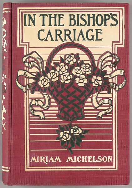 "Signed Margaret Armstrong binding design in white and dark green on red buckram of a basket of roses tied with ribbon on either side surmounted by the titles in dark green with a background formed by a "T" shaped white panel with rules of various thicknesses repeated down the stem of the "T". The spine has the titles in dark green and a motif of crossed trumpets decorated with ribbon surmounted by a smiling mask with a double white rule at the head and tail. In original paper dust jacket with the titles in brown on the front and spine panels with Grosset and Dunlap advertising in brown on the rear panel. Originally published by Bobbs-Merrill, the only change to the binding for this later Grosset & Dunlap printing was the substitution of Grosset and Dunlap for Bobbs-Merrill on the spine and the substitution of plain red cloth instead of fine, diagonally ribbed cloth. This is the author's first book which was made into a silent film in 1913 starring Mary Pickford. The story of Nance Olden, an orphan raised in an orphanage, who becomes the companion of a burglar and helps him in his work. She is eventually redeemed by the unspoken influence of a Bishop who she initially fools and later saves from scandal. A charming Armstrong binding design whose “T" shaped white background panel was a reuse of the background motif Armstrong used on her 1899 masterpiece, Whittier's Tent on the Beach. A scarce survival with the majority of the white pigment intact...in the original paper dust jacket" -- Austin Abbey Rare Books.