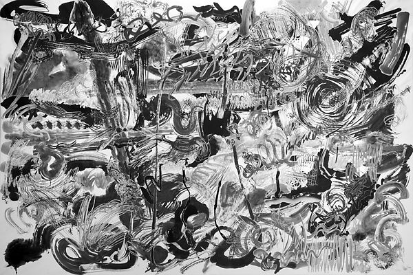 Viewed from a distance, Wu Jian’an’s 500 Brushstrokes, #10 appears to be a riot of gestural ink brushstrokes spread across a massive rectangle of absorbent Xuan paper—the work of an artist possessed by urgent forces of expression that poured forth without restraint. Upon closer examination, the work’s deliberate, even painstaking, composite nature becomes apparent. Each of the dynamic brushstrokes has been carefully cut out of its original context and collaged into the larger whole using traditional Chinese conservation techniques, which allow for nearly seamless layering of paper on paper. In scale and aesthetic, the resulting work evokes the passion and gestalt of postwar American action painting, but its material orientation reveals a more nuanced and layered understanding of abstraction. Wu’s work invites us to question inherited assumptions about the meaning and mechanics of large-scale gestural abstraction, which are so heavily textured by the lionizing stories of Pollock, Kline, and others of their generation. Far from the urgent outpouring of emotion that it seems at first, 500 Brushstrokes is a celebration of deliberation, craftsmanship, material, and conservation technique. In this way, Wu has incorporated not only postwar American abstraction, but also premodern Chinese painting and conservation to the layered portfolio of inspirations that have led to this highly original artwork.