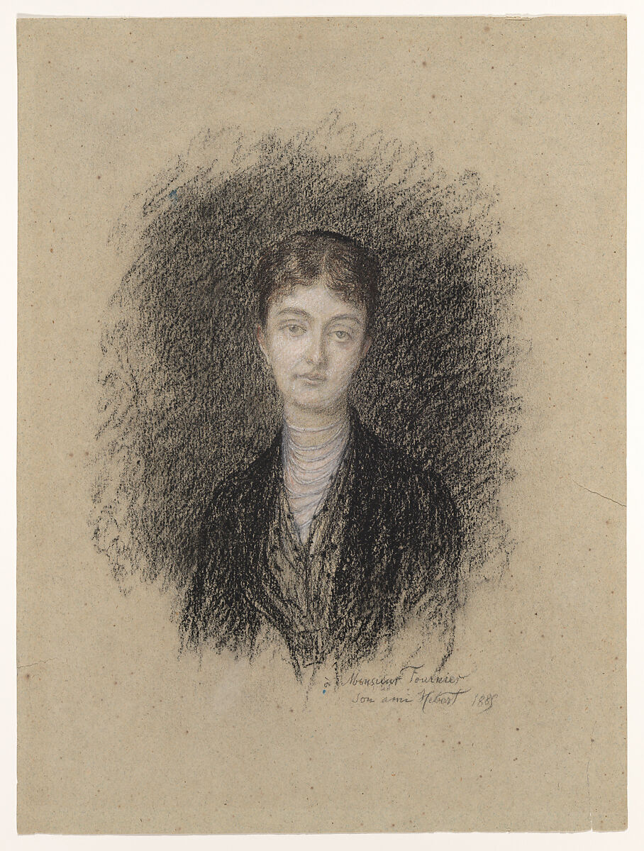Little known today, Hébert was a distinguished nineteenth-century academic artist. This drawing is a testament to his activity as a popular painter of society portraits, although it is more personal in nature, dedicated by the artist to his friend, M. Fournier, presumably the husband of the sitter. It dates from 1885, the year Hébert was appointed for a second term as Director of the French Academy in Rome.