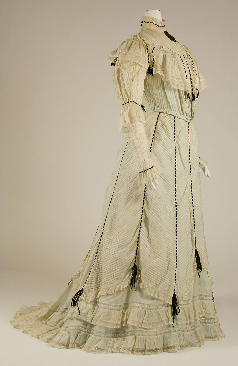 At the turn of the century, the S curve prevailed, appearing to bifurcate the body at the waist. A narrow fulcrum of waist seemed to pivot between a base in the skirt and a separately-aligned torso.