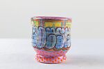 In his work, Lugo uses vivid glazes to apply surface decoration onto ceramic forms, drawing upon visual sources as wide ranging as graffiti tags and Chinese ceramic patterns, and clay bodies that take their cues from forms such as Ancient Greek kraters or nineteenth-century monumental vases. Lugo’s defiant genre-blending pulls from a deep history of ceramics and confronts the institutional precedents set by the histories of collecting works from Classical Antiquity, East Asia, or the Italian Renaissance. With these personal riffs, the artist draws attention to intergenerational experiences of social and racial injustice, while also celebrating his personal roots within Latino and African American culture.