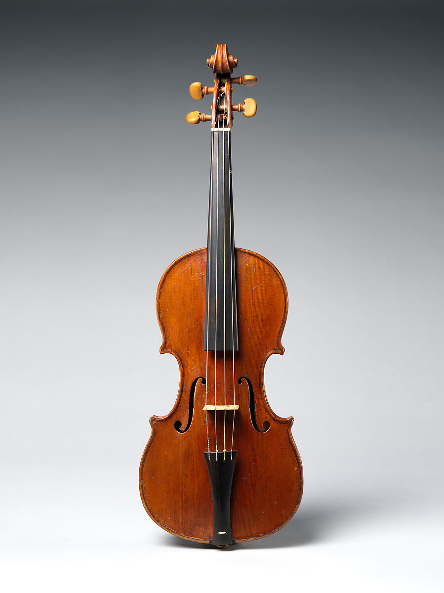 This small-size violin is a rare form of the instrument known as a violino piccolo. Instruments such as this were used to play higher passages in ensemble music written in the seventeenth and eighteenth centuries. Most famously, there is a part for a violino piccolo in J. S. Bach's first Brandenburg Concerto. As playing techniques changed in the second half of the eighteenth century, violinists began to shift their hands higher on the fingerboard, allowing them to play these higher passages on standard instruments. Surviving violinos piccolo are quite rare and significantly, this example retains its original internal bass bar and neck, parts that were often replaced in the nineteenth century. This instrument was in the personal collection of New York City violin dealer Rembert Wurlitzer and is attributed to the London maker Joseph Hill.