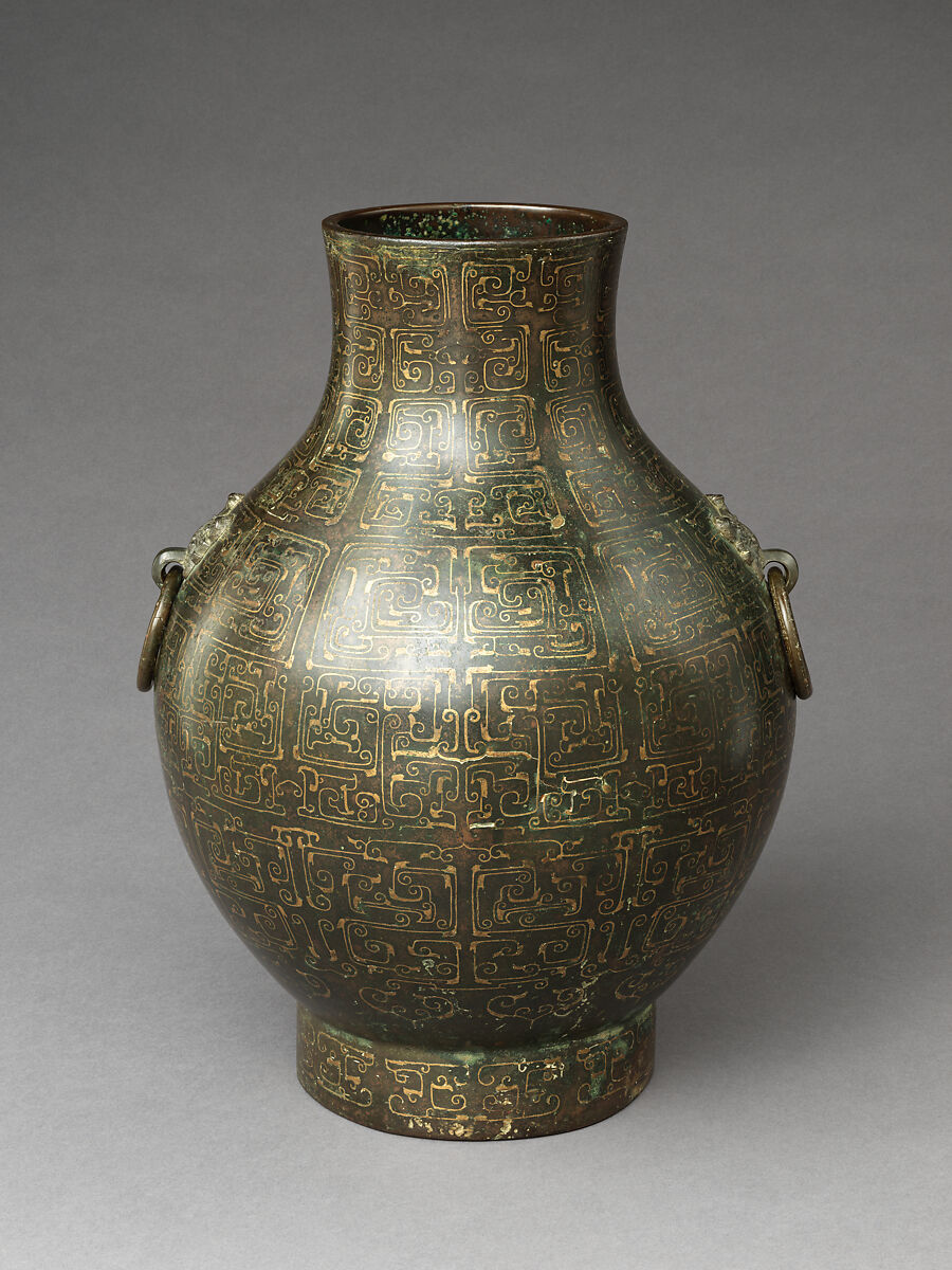 This ritual wine container with exquisite inlaid decoration illustrates a major innovation in China’s bronze tradition in the late Eastern Zhou dynasty (770–256 BCE) when, inspired by the nomadic art of the steppes, Chinese craftspeople applied sumptuous surface decor to otherwise austere bronzes. It also epitomizes a critical change in the function of bronze vessels from ritual objects to vehicles for the display of wealth and status.