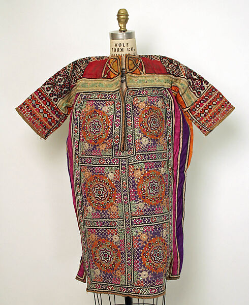 - Medium: Silk, cotton, metal wrapped thread, sequins, mirror insets; embroidered