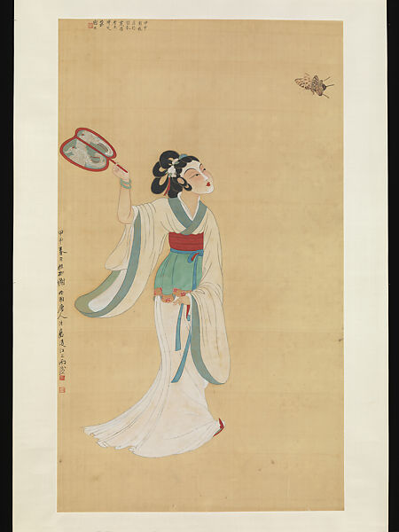 This work of art is currently on loan to the museum.Like his friend Zhang Daqian, whom he accompanied to Dunhuang, Xie Zhiliu was obsessed with Chinese painting history. He used his time among the ancient murals of the desert oasis to expand his horizons as a painter and an art historian. Like Zhang, Xie was fascinated by the female figures he saw there—especially the brightly colored examples from the Tang dynasty (618–907). According to Xie’s inscription, this was made shortly after his return from Dunhuang using techniques he learned from studying the Tang murals.