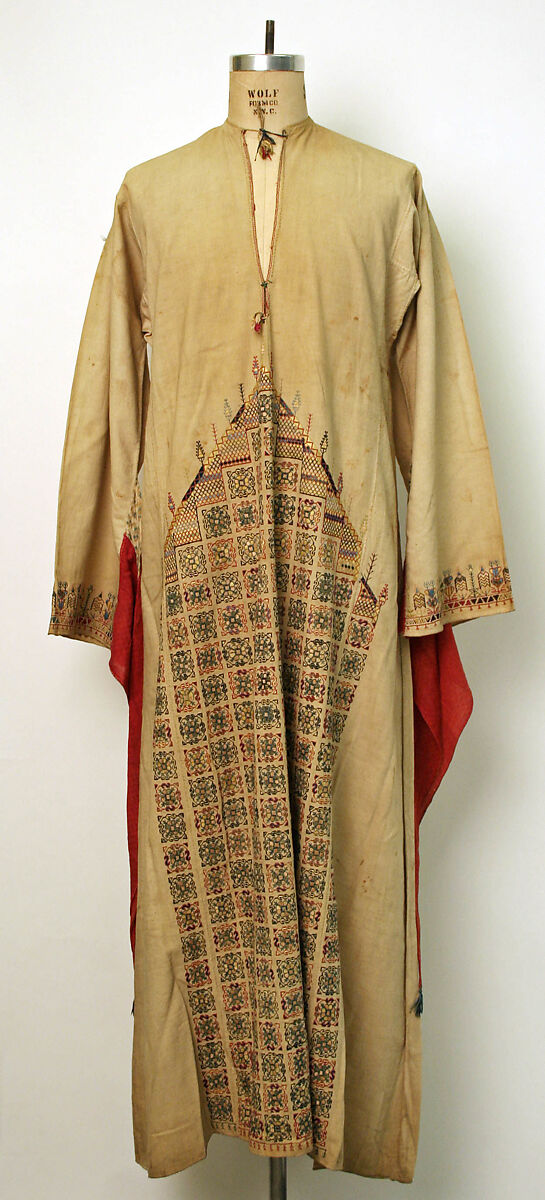 This ensemble includes various garments, all probably made in Syria. However, it is not clear whether the individual pieces were assembled to be sold for the tourist market.