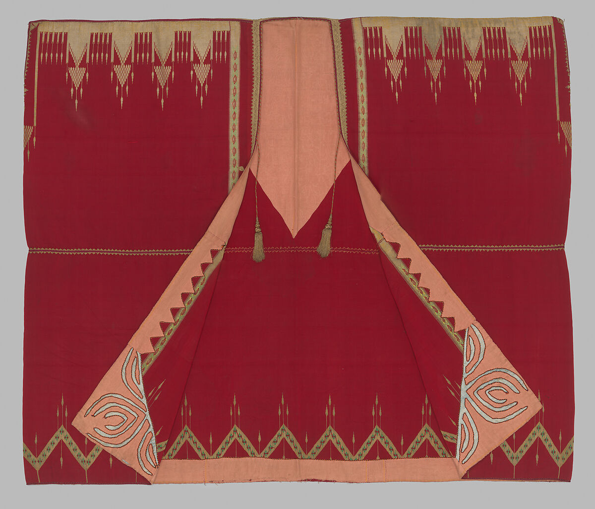 The abaya (cloak) is a unisex type of garment, perhaps the most characteristic garment in the Arab world. Wealthy Bedouin and people living in cities and villages commissioned ornate silk abayas (cloaks) from workshops in Aleppo and Damascus for weddings and ceremonies or as diplomatic gifts for high-ranking officials. Sophisticated abayas often feature special motifs centered on the wearer’s back, which most likely convey symbolic meanings, such as protective powers, or perhaps reflect the wearer’s socio-religious identity. Syrian abayas were worn by different social groups in Syria and beyond and were considered one of the most characteristic and fashionable garments of Arab dress.