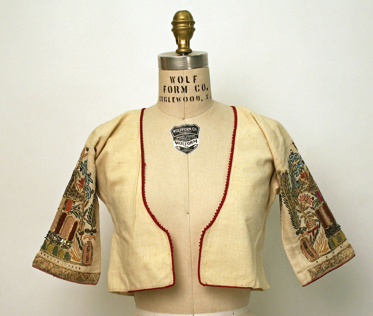 - Medium:Cotton, metal wrapped thread; embroidered