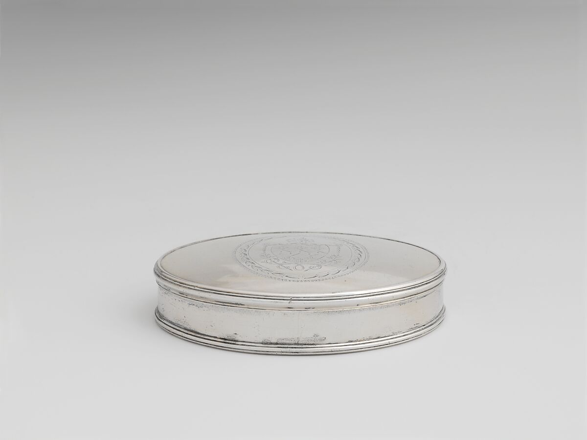 This box bears the Arms of Barnardiston. It came from a Boston family with the tradition that it had been presented to a member of the family who had distinguished himself in the French and Indian Wars.