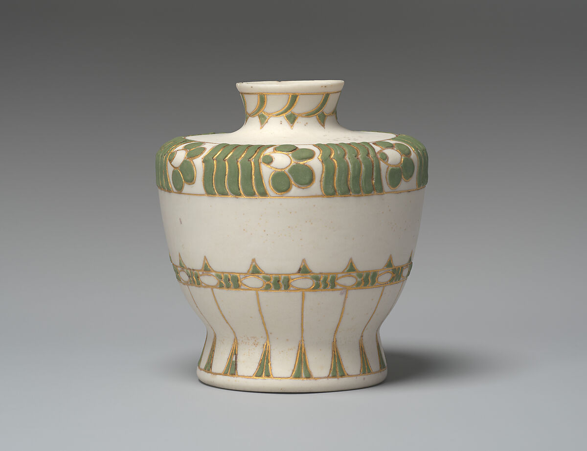 - Title: Vase with green and gold decoration on white