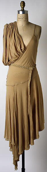 In recent years Nicolas Ghesquière has wielded an extraordinary influence on contemporary fashion as the designer for both Callaghan and Balenciaga. His use of jersey has come to be identified as one of the components of his signature style. Unlike past designers who worked in the material, however, Ghesquière prefers a more relaxed, almost deliberately negligent fall of the cloth across the body. His goddess dresses project a carefully composed and self-conscious nonchalance that separate them from their more historically reverential predecessors.