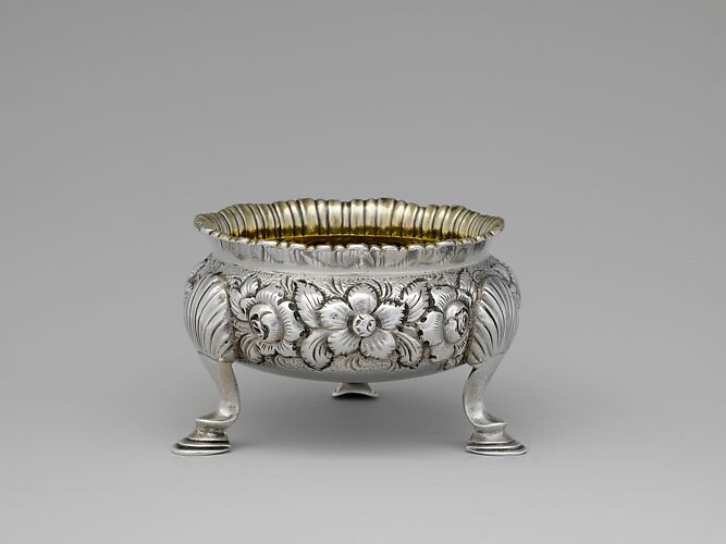 This set of tongs belongs to a tea and coffee set containing nine pieces. The service was made for James Hamilton Wilson of Baltimore in 1845, the year he married. The coat of arms is that of the Hamilton family. These tongs are ornamented with similar motifs to those found on the holloware pieces of the service; however, the technique used is flat chasing instead of repoussé.