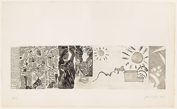 - Medium:Photo etching, soft-ground etching, sugar lift etching, and open bite (with some sections, at left, collaged) on Arches paper